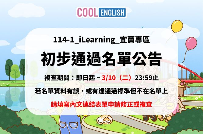 114-1【iLearning_宜蘭專區】初步通過名單公告🎈
