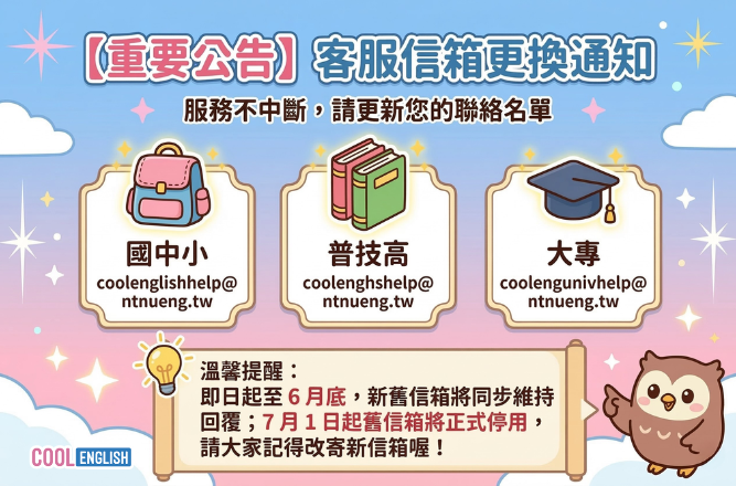 📢 【重要公告】Cool English 客服信箱更換通知 🦉