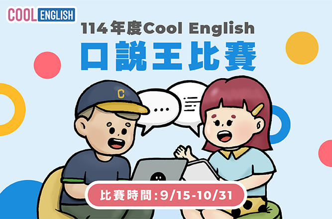 【114 年國中小比賽】口說王 (0915-1031) 開跑啦! 🎉 2025年 09月 16日(Tue) 09:30 Number of replies: 0 114 年度 Cool English《口說王比賽》開跑啦! 比賽時間報名+作答:9/15 (一) – 10/31 (五)(記得要先完成報名,才能進入作答喔!) 參賽對象國小三~六年級國中七~九年級(依學校區分一般地區組、偏遠地區組) 通過標準國小組:完成 30 題組,平均分數達 85 分(含)以上國中組:完成 30 題組,平均分數達 90 分(含)以上 即可獲得 「口說王獎」獎狀乙張! 升級版獎勵今年獎項比以往更豐富: 小禮物共 6,000 份 超商商品卡 200 元 × 800 名(全新增加!) 超商商品卡 600 元 × 200 名人人都有機會,千萬別錯過! 比賽連結國小區:https://qrcd.org/9ARU國中區:https://qrcd.org/9ARW懶人包&比賽辦法:https://qrcd.org/9ARQ 快來展現你的英語口說實力,拿獎狀還能抽好禮!#CoolEnglish #口說王 #英語口說 回列表