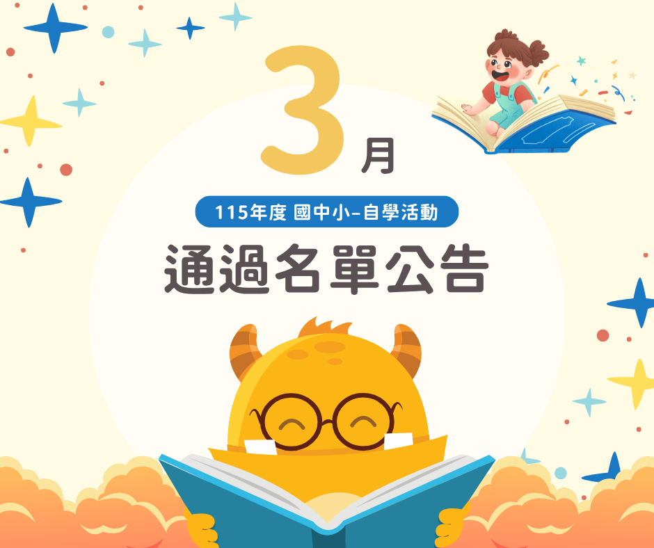 【115年度國中小自學活動】 3月份通過名單出爐🔥 2026年 04月 1日(週三) 15:40 Number of replies: 0 🏆 3月份通過名單:https://reurl.cc/K2Mblj本活動不提供複查服務。如有以下任一情形者,不列入本次通過名單。1. 未於 3/31 前填寫報名表2. 未使用同一支帳號報名&進行自學 or 跨組報名3. 報名資料填寫不齊,致團隊無法辨識其身分4. 學習時間內的停留平台時間未達所屬組別(一般/偏遠)標準Cool English團隊感謝您的支持! 回列表